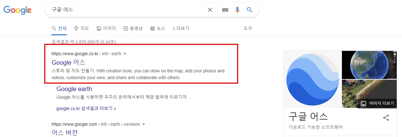 2. 구글어스 한글판 무료 다운로드 PC버전