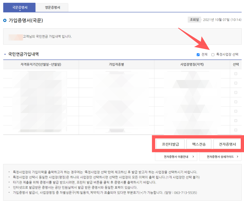 출력 이외에도 팩스로 전송 또는 전자증명서로도 발급이 가능합니다.