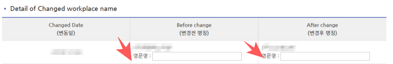 이전에 다녔던 회사가 회사명을 바꿨다면 바뀐 회사명의 영문명을 적어주신 후 출력하면 됩니다.