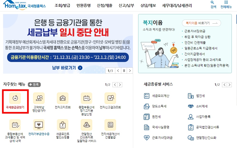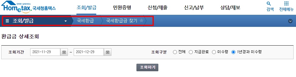 2. 국세환급금 조회방법