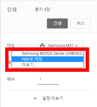 미리보기 우에 프린터 모양을 클릭하면 출력이 가능합니다.