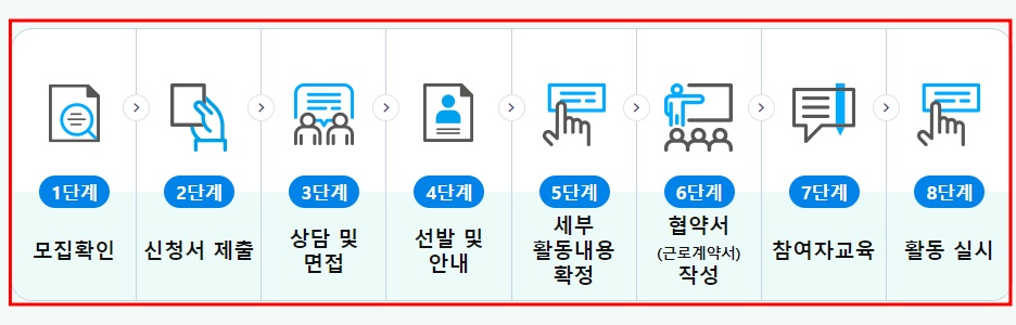 노인일자리라서 그런지 몰라도 아직까지 신청서는 수행기관 또는 관할 시군구에 방문하여 참여 신청서를 제출해야 합니다. 그런 다음 상담 및 면담이 진행된 후 신청자의 자격정보나 선발기준에 따라 참여자 선발 및 안내가 진행되며, 선발된 후에는 협약서나 근로계약서를 작성한 후 참여자 교육을 진행한 후 일자리 활동을 하실 수 있게 됩니다.