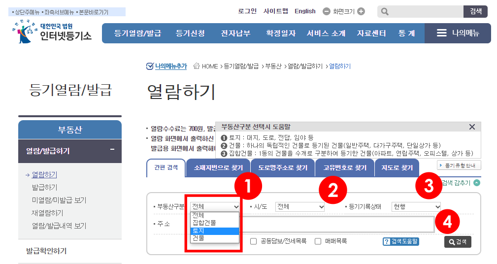 등기부등본 주소검색