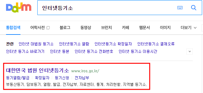 포털에서 인터넷 등기소로 접속하거나 하단의 주소를 클릭하셔도 됩니다.
