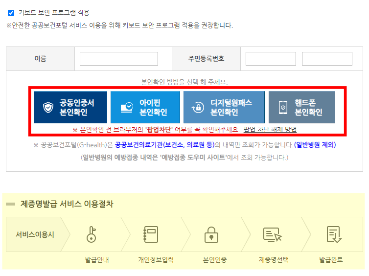 그리고 공인인증서와 같은 공동인증서나 핸드폰 본인확인등을 통해 본인 확인을 진행합니다.