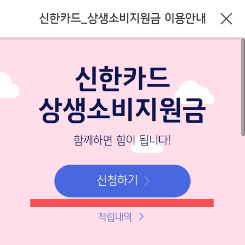 저는 신한체크카드와 신한신용카드를 사용하고 있는데요. 얼마 전 신한 페이판앱으로부터 상생소비지원금 신청하라는 알림을 받았습니다