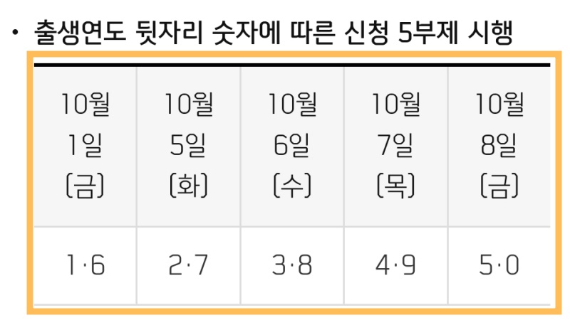 ※10월 8일까지는 5부제 신청기간이며, 5부제 기간 제외 언제나 신청가능