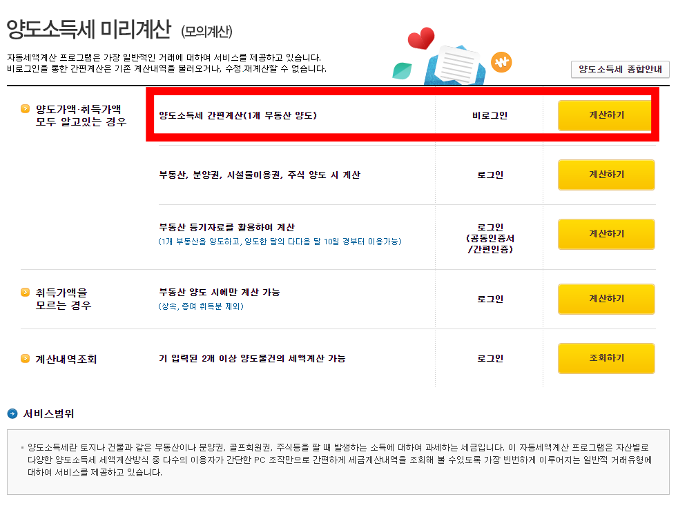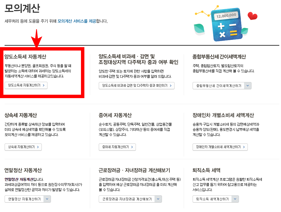 홈텍스에 있는 양도소득세 자동계산은 단순히 세액계산을 제공하는 서비스로 실제 신고가 이루어지는 것은 아닙니다..