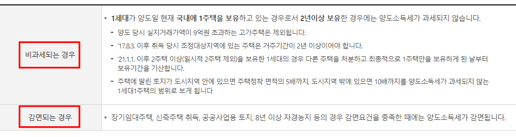 2. 양도소득세 비과세 요건 및 양도소득세 과세 표율 변경