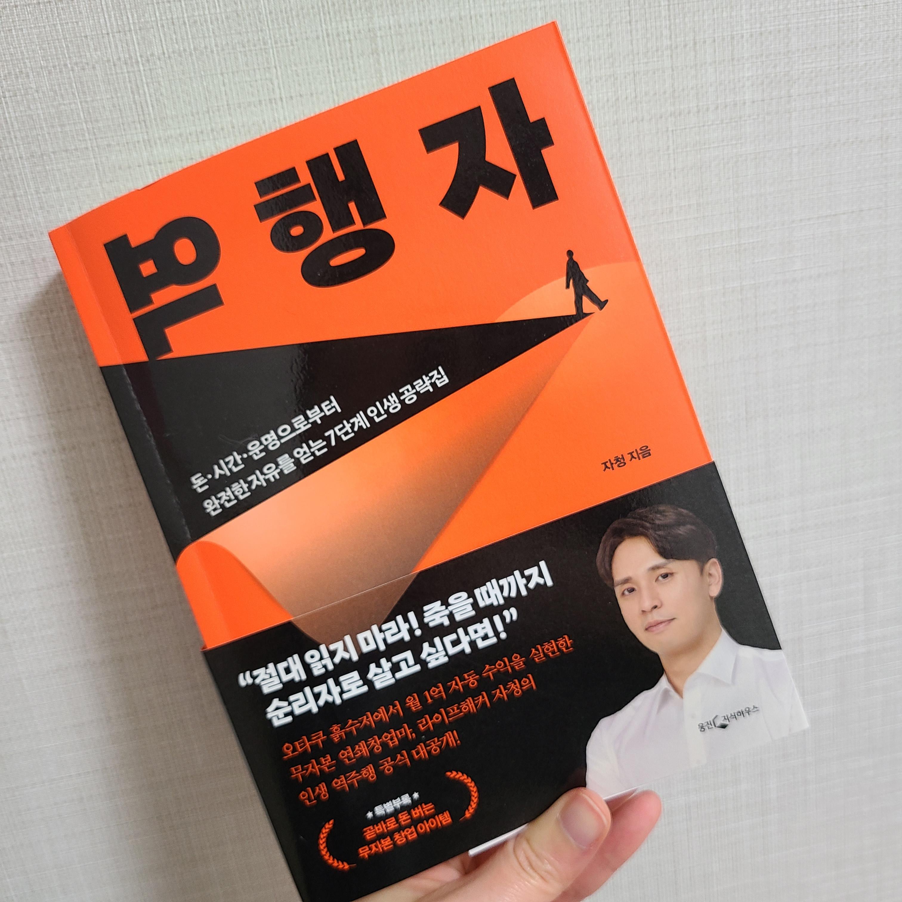 경제적 자유를 위한 역행자 7단계에 대한 이야기로 그동안 유튜브나 여러 매체에서 말한 자청님의 경제적 자유에 이루었던 과정을 총 집약한 책으로 근래에 했던 저의 행동 중 신속하게, 실행력 있게 가장 잘한 일이 아닐까 싶습니다.