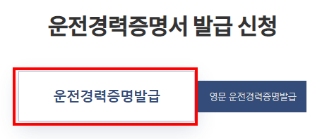 신청할 때 기본적으로는 국문 운전경력증명서 신청이 나오고, 영문으로 발급을 원할 시에는 영문 운전경력증명발급을 누르시면 됩니다.