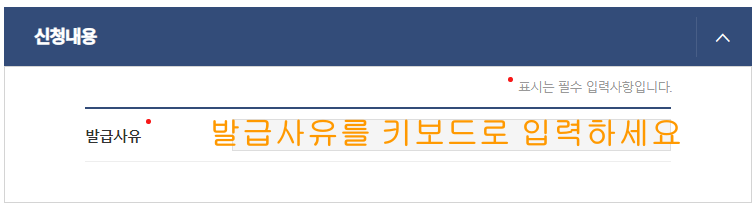 하단 링크를 클릭하시면 발급신청부분으로 바로 넘어갑니다.