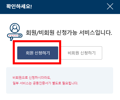 만약 로그인을 하지 않았다면 신청하기를 누를때 아래와 같은 로그인 안내가 나옵니다.
