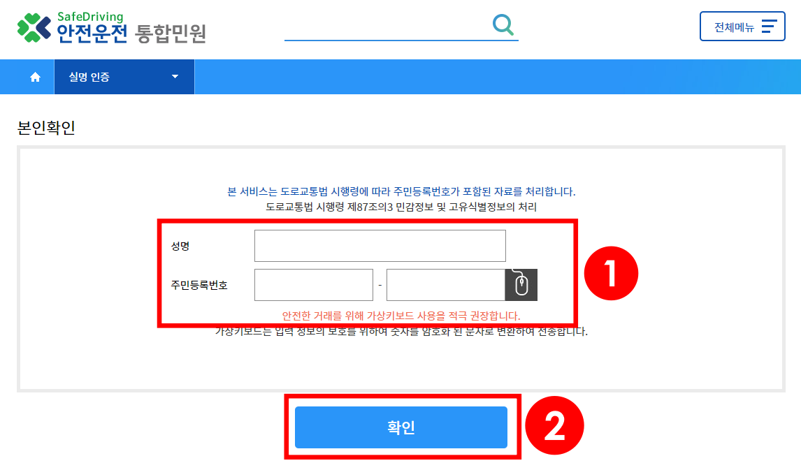 성명하고 주민등록번호를 입력하면 본인 확인 인증을 진행합니다.