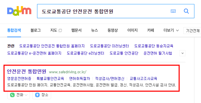 포털사이트에 도로교통공단 안전운전민원 을 검색합니다.