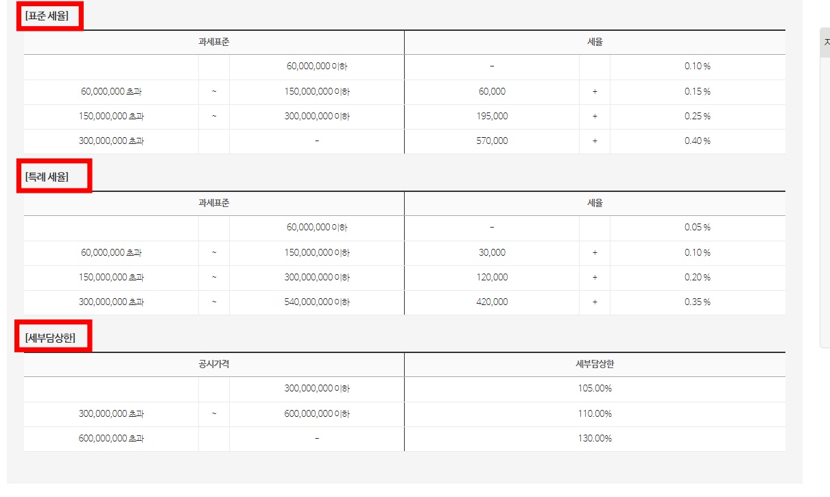 그 외에 공시가격이 9억 원을 초과하거나 다가구주택 인경유에는 표준세율이 적용됩니다.