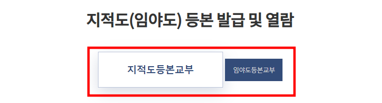 지적도 등본과 임야도 등본 중 하나를 선택하여 클릭합니다.