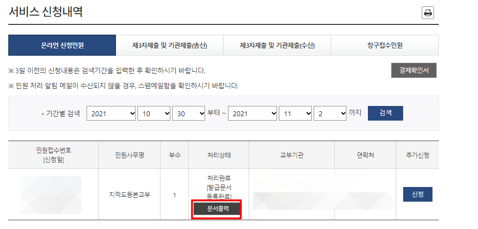 지적도 무료열람 하기 위해서는 수령방법을 온라인 발급(본인 출력)으로 선택한 후 신청하기를 누릅니다.