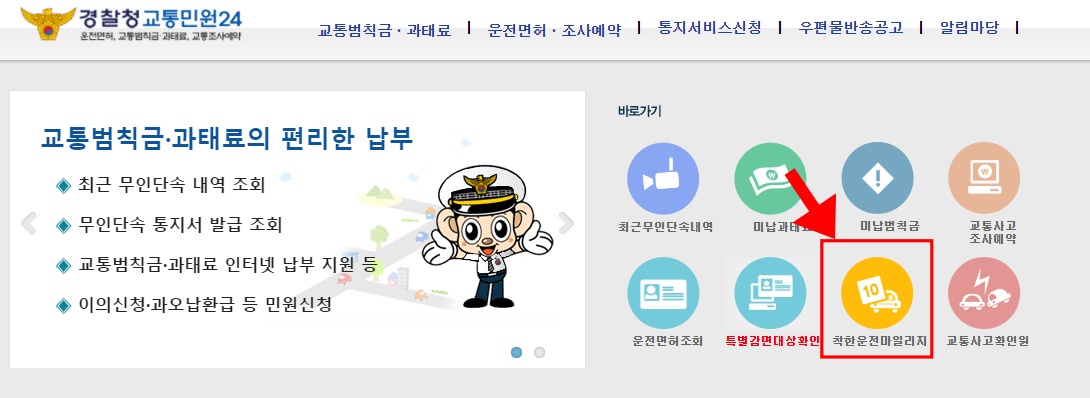 착한운전 마일리지 인터넷신청 하는 법은 경창철 교통민원 24 사이트에서 신청 가능하며 앱에서도 신청 가능합니다.