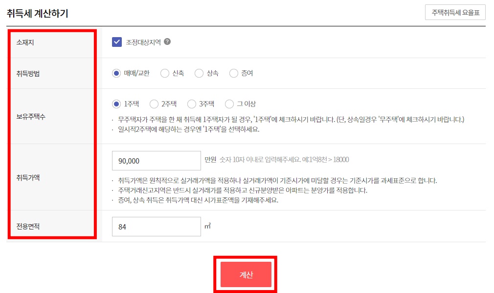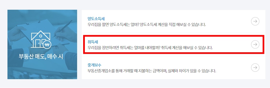 여기에서 취득세 계산을 클릭합니다.