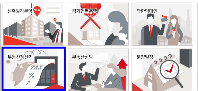 중간 부분 왼쪽에 있는 부동산 계산기를 클릭합니다.