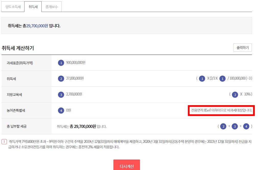 만약 전용면적이 85m2 를 초과한다면, 농어촌특별세가 과세되어 3150만 원이 나오게 됩니다.