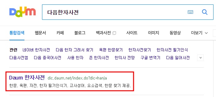 포털사이트에서 다음한자사전을 검색하여 홈페이지에 방문합니다.