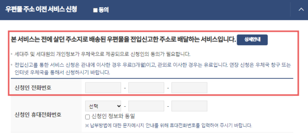 - 우편물 주소 이전 서비스 신청