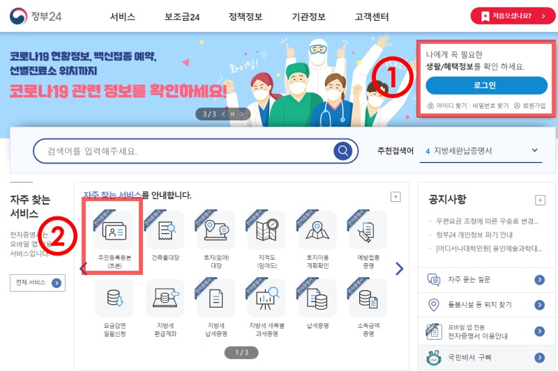 주민등록등본 인터넷발급은 메인 홈페이지에서 바로 찾을 수 있습니다.