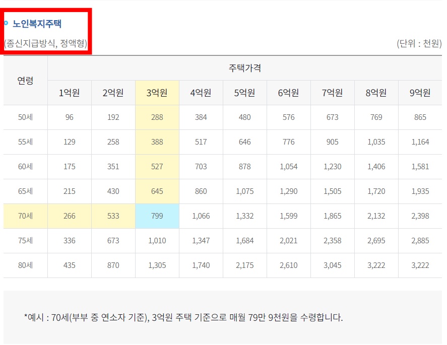 종신 방식 기준으로 주택 종류에 따라 약간씩 금액차이가 나는 걸 볼 수 있습니다.