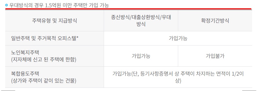 우대 방식의 경우 1.5억 원 미만의 1 주택자만 가입 가능