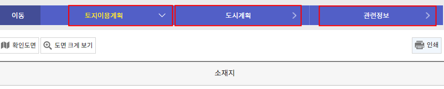 여기에서 토지이용계획 열람을 누르면 해당 주소의 소재지와 지목 , 개별공시지가 (연도별), 면적 등에 대한 정보와 지역지구 등 지정여부 등에 대해 자세히 나와있어서 알아보기가 편합니다.