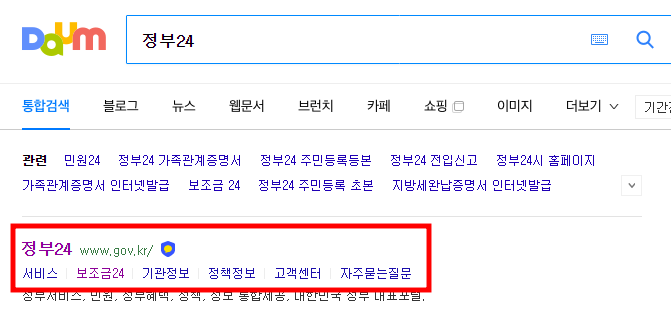 1. 포털사이트에서 정부24를 검색하여 클릭합니다.