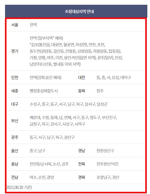 그 외 대전, 세종, 대구, 부산, 광주 등 조정지역 해당여부를 꼭 확인하시기 바랍니다.